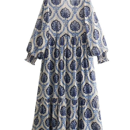 Autumn Winter Ruffles Pleated Loose Long Dress