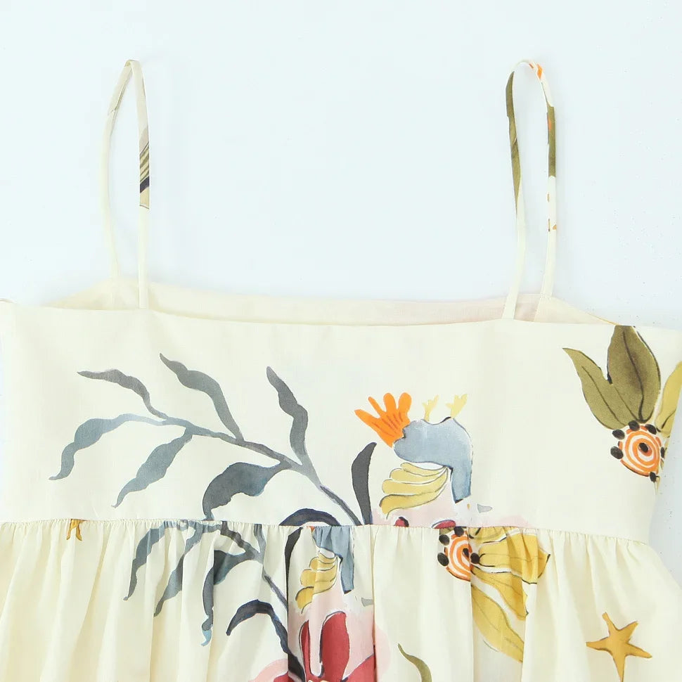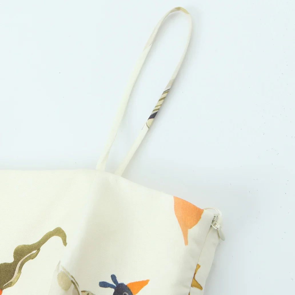 Fashion Printing Loose Side Zip Sleeveless Backless Sling Mini Dress
